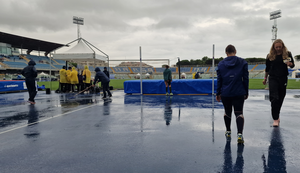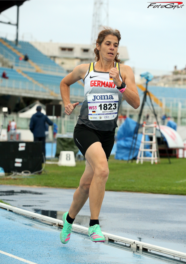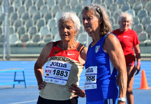 Die Leistungen der Mehrkämpferinnen waren sehr stark durch schwere Regenschauer, langes Warten und Wasserlachen im Anlaufbereich bei Hoch- und Weitsprung beeinträchtigt; allerdings boten nur die beiden Mehrkampftage bisweilen sehr schlechtes Wetter. Nicola konnte das noch einigermaßen verkraften, für Tina sprang dadurch leider ein „salto nullo“ im Hochsprung heraus. Sie ließ sich aber nicht unterkriegen, kämpfte weiter und konnte den ersten Tag mit einem guten 200m-Lauf mit erneut unter 30s abschließen. Sie hatte auch in den Einzelkonkurrenzen Pech, ihr fehlten über die 300mHü nur 0,6 sec am Einzug ins Finale, über 100m war sie 9/100 zu langsam für das Halbfinale. Dennoch hagelte es - trotz der späten Jahreszeit - insgesamt 4 persönliche Bestleistungen für Tina. Nicola konnte über die 300mHü in der W55 aufgrund geringerer Konkurrenz gleich im Finale starten und freute sich trotz schlechtester Meldeleistung besser als erwartet über den 5.Platz.