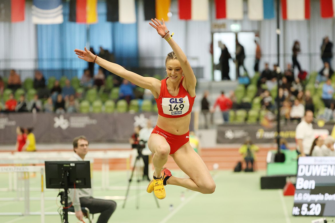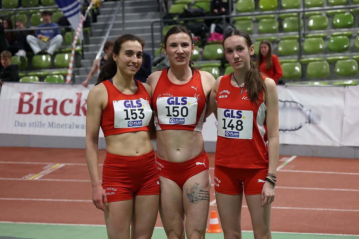 Im Dreisprung trat Carlotta Loewenthal in ihrem ersten U20-Jahr an. Die Vorjahresfünfte fand nicht gleich in den Wettkampf und suchte anfangs noch das Brett. Als sie es fand, sprang sie mit 12,53m zwischenzeitlich sogar auf die Führungsfunktion und wurde erst kurz vor Schluss von der Wattenscheiderin im Konter wieder auf Silber verdrängt. Über 800m gab Jascha Heisterkamp ein Debüt in der U20 unterm Hallendach und verkaufte sich mit 1:57,96min gut, die taktischen Schlüsse für zukünftige Rennen unterm Hallendach mit engen Kurven und Gruppenstart von der Evolvente hat er sicherlich gezogen. Chayan Castro Garcia und Konstantin Tchernyi gingen nach der Staffel auch im Kurzsprint an den Start, blieben aber mit ordentlichen Zeiten von 7,06s bzw. 7,13s leider im Vorlauf hängen. Das gleiche Schicksal traf Phoebe Adenmosun über 60m Hürden, wo sie nur um 9/100s das Halbfinale verpasste. Mit 8,98s konnte sie sich aber über eine neue persönliche Bestzeit zum Saisonhöhepunkt freuen und verkaufte sich als Vorlauffünfte so teuer als möglich.