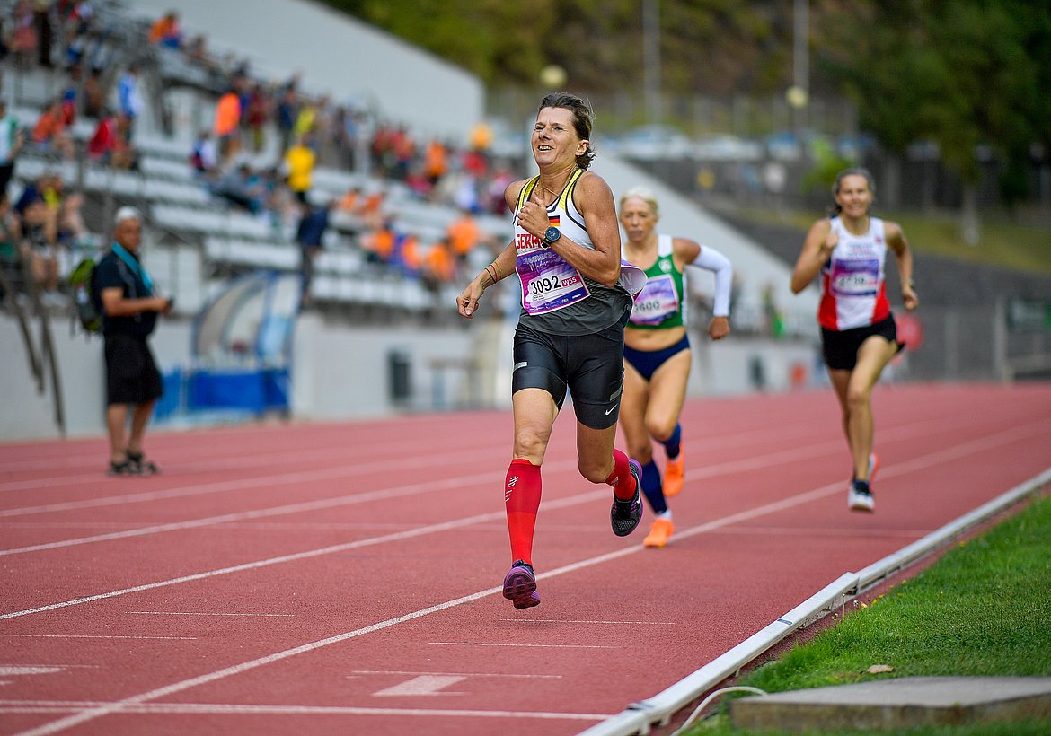 Zum Abschluss warteten noch die spannenden Nationalstaffeln auf uns, zunächst die klassischen 4x100m, bei denen Tina in der W50 mit ihrem Team eine weitere Medaille erlief – diesmal die bronzene. Gudrun sprang dankenswerterweise für die leider wegen Hexenschuss ausfallende Dagmar in der W 70 ein und belegte damit den 4. Platz.