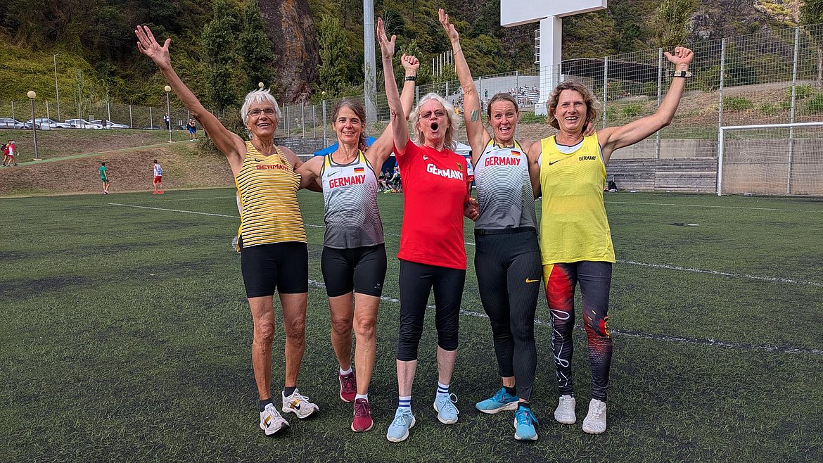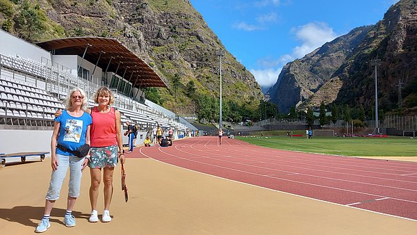 Nach nervigen Flugausfällen, Gepäckverzögerungen und Mietwagenproblemen landeten dann doch alle 5 Athletinnen der LG-Nord Tina Schulz, Heike Hesse, Nicola Iwanowski, Gudrun Liethke und Dagmar Rohnstock mit ihrem Masters-Trainer Thomas Rohnstock wohlbehalten in Funchal auf Madeira bei sommerlichen Temperaturen. Die Motivation wurde nicht nur durch das sonnige Wetter beflügelt, sondern auch durch das von hohen begrünten Bergen umgebene, beeindruckende Stadion mit großzügigem Einlaufplatz, hoher Tribüne und großem Festzelt für die Siegerehrungen.