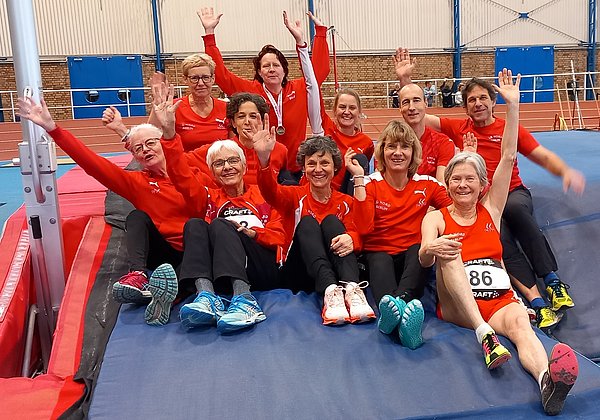 Herausragend waren Dank ihres Trainingsfleißes die gleich drei persönlichen Bestleistungen von Tina Schulz in der W50 über 60m (8,74sec), 60m Hürden (10.68sec) und über 200m (28,60sec – schneller als im Freien!) sowie der hervorragende Hürdenlauf von Caroline Loewenthal in 9,91sec (damit Nr. 2 in D). Sie erfreute aber vor allem durch ihre überragenden Hoch- und Weitsprungleistungen für die W50 gleich zu Saisonbeginn, mit denen sie aktuell im DLV deutlich an der Spitze steht. So meisterte sie 1,53m und riss im 3. Versuch nur ganz knapp den deutschen Rekord im Hochsprung in der Halle für ihre Altersklasse (1,58m). Im nachfolgenden Weitsprung erzielte sie sogar Bestleistung mit total beeindruckenden 5,07m, eine weitere Steigerung gegenüber ihrem Sieg bei den Deutschen Meisterschaften des letzten Jahres. Welch ein Erfolg, den wir alle gemeinsam miterleben und feiern konnten.